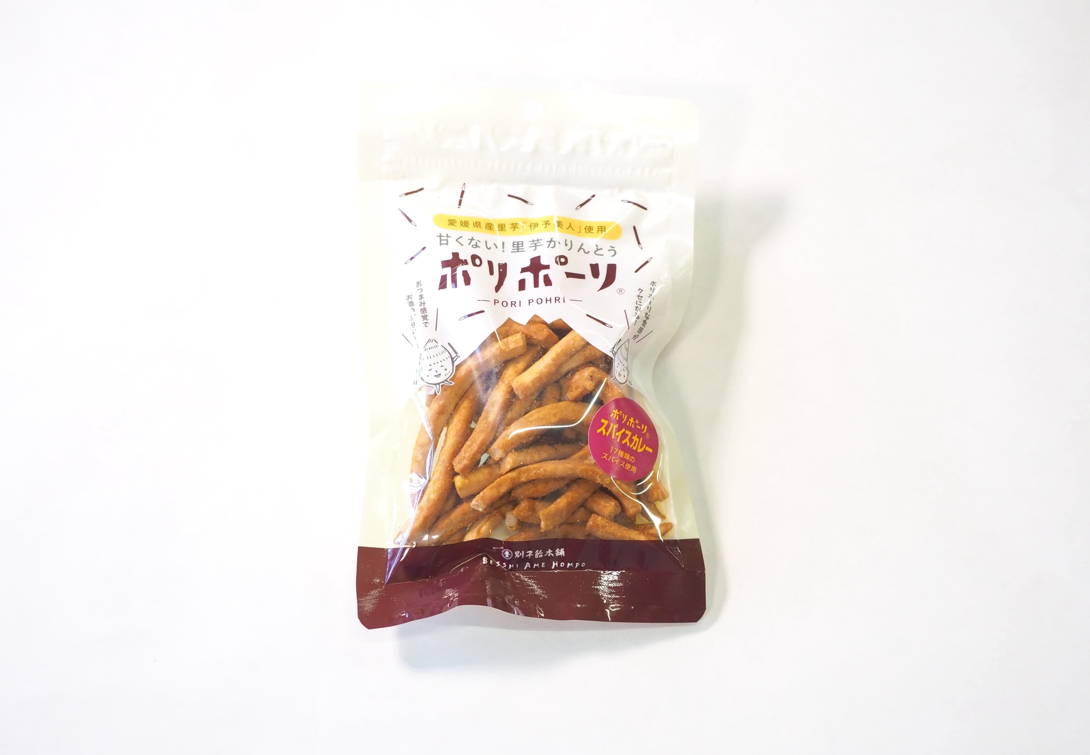 商品特徴:石鎚山系の豊かな伏流水と瀬戸内の温暖な気候で育てられた愛媛県のブランド里芋「伊予美人」を練り込んでこめ油で揚げた甘くないかりんとうです。
