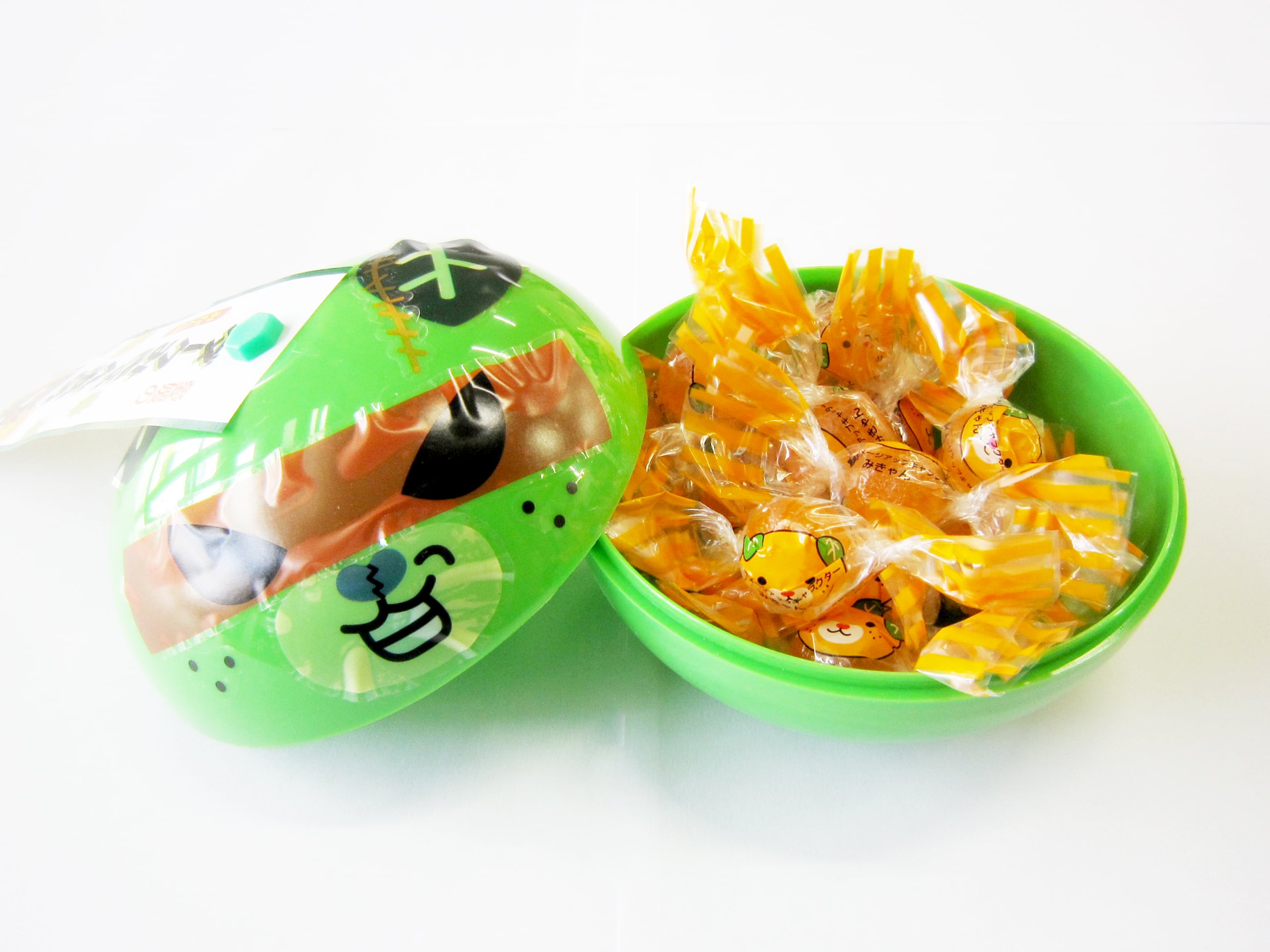 商品特徴:愛媛県の公式キャラクター「みきゃん」をモチーフにした商品です。オレンジ・みかん混合果汁をいれた甘酸っぱいおいしさのあめ玉です。