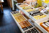 商品特徴:国産の栗を厳選した羊羹です。上部には栗を職人の手で丁度良いサイズに刻み綺麗に並べました。