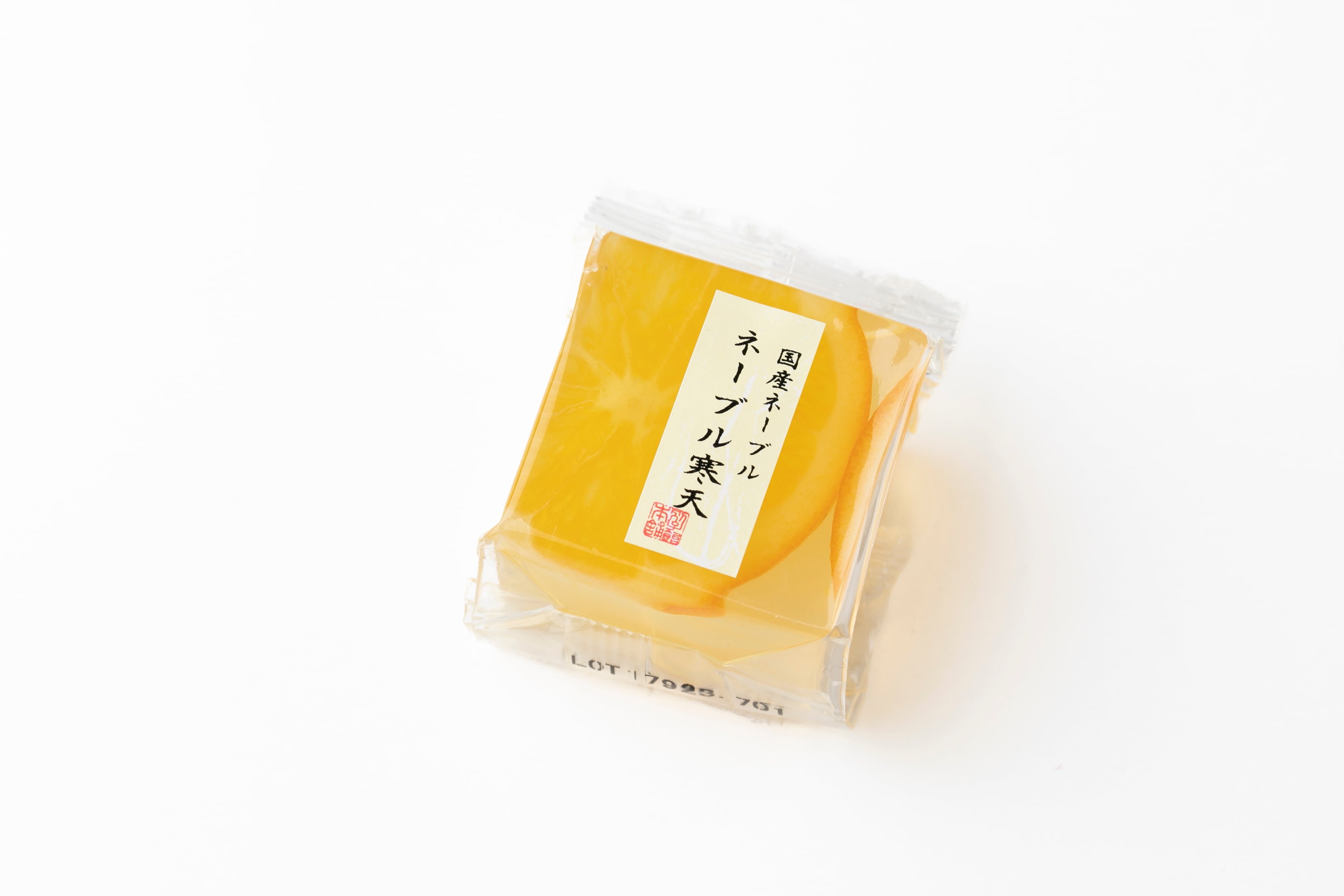 商品特徴:瀬戸内産のネーブルを寒天に浮かべました。清涼感を呼ぶ爽やかな風味の味わいです。