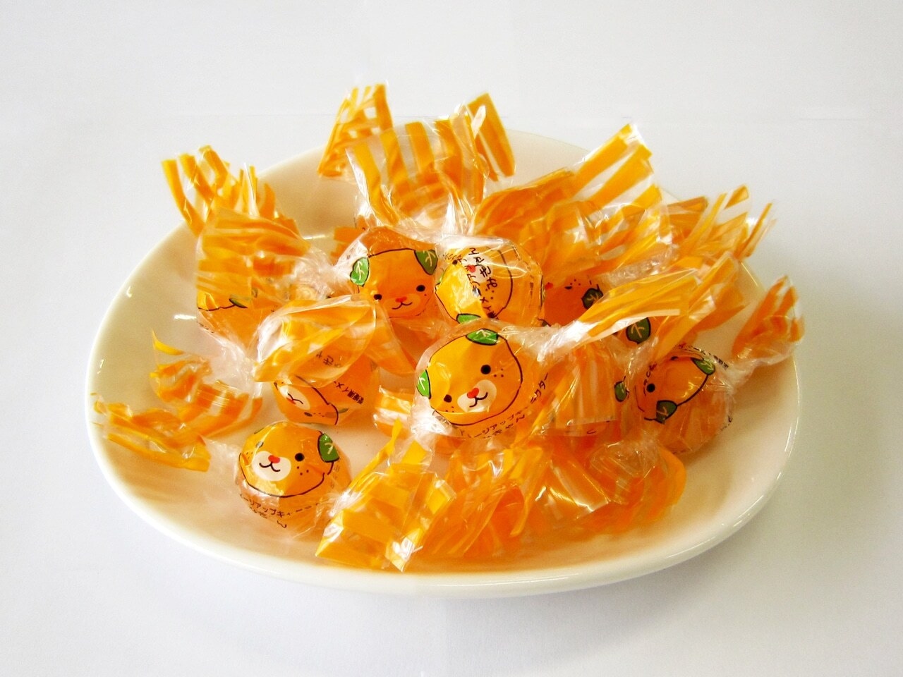ご家族や友人に喜ばれる、可愛らしいみかん味の飴玉です。