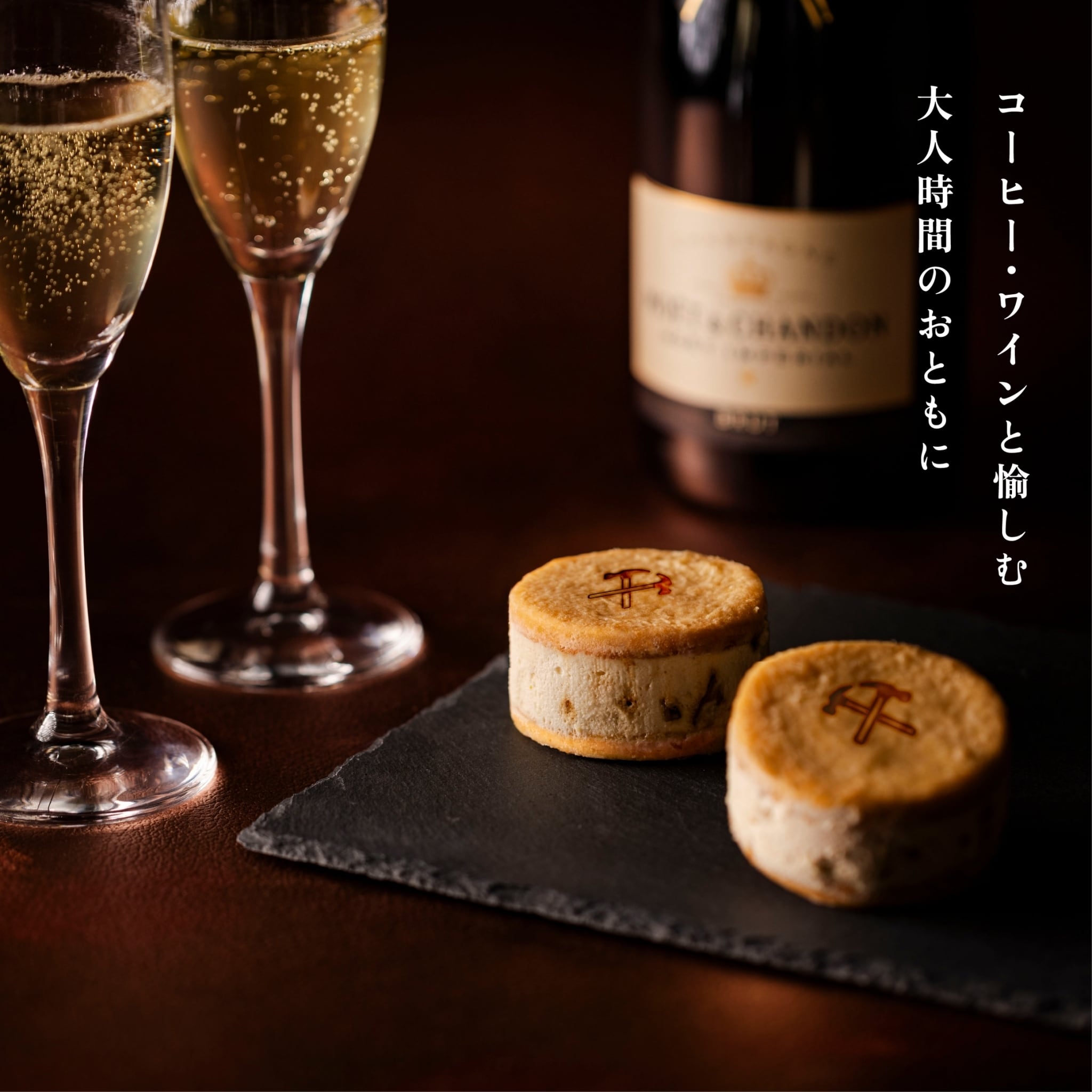 “AKAGANE”は、キャラメリーゼしたアーモンドとピスタチオに大粒の"中山栗"を加え、クリームチーズを加えて仕立てたオリジナルのヌガーグラッセを、シナモンスパイスを効かせたクッキーでサンドした大人時間の贅沢スイーツです。