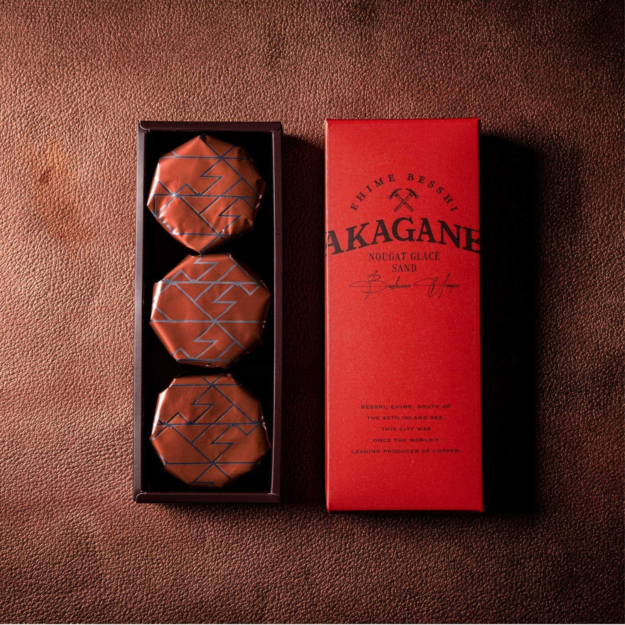 「愛媛産中山栗を贅沢に使用したヌガーグラッセサンド」AKAGANE ●3個箱入り●